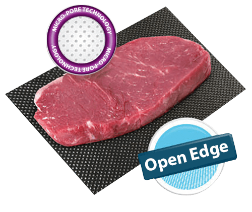 • Due to elimination of  nonabsorbent raw materials, synthetic glues and binders, Micro-Pore  Open Edge Pads perform up to 30% better than traditional meat pads.